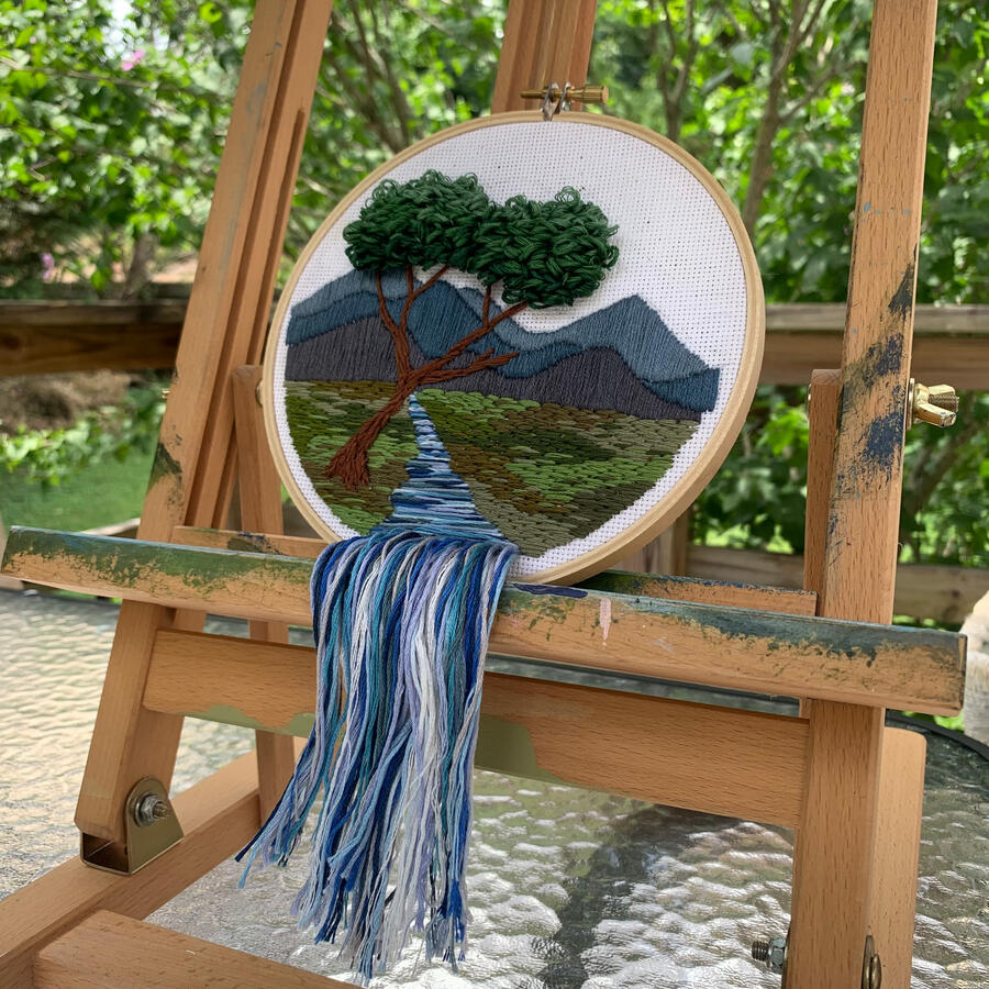 My embroidery pieces showcase the fluidity, beauty, and harmony of the natural environment. Needlework is my personal favorite art form because it can not only be enjoyed through sight but by feeling the various textures the art piece has to offer.
