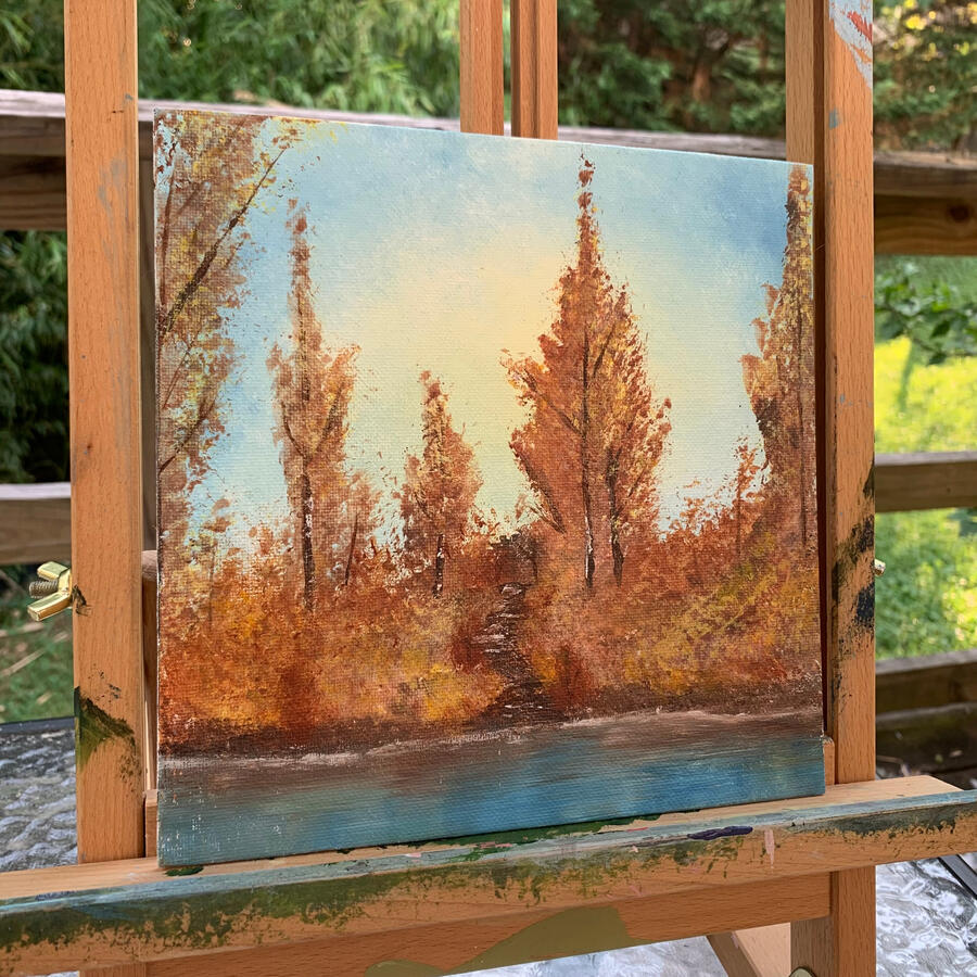 This piece perfectly encapsulates the warm assortment of colors that represent autumn. This is one of my first paintings I made that ignited a passion for what I do.
