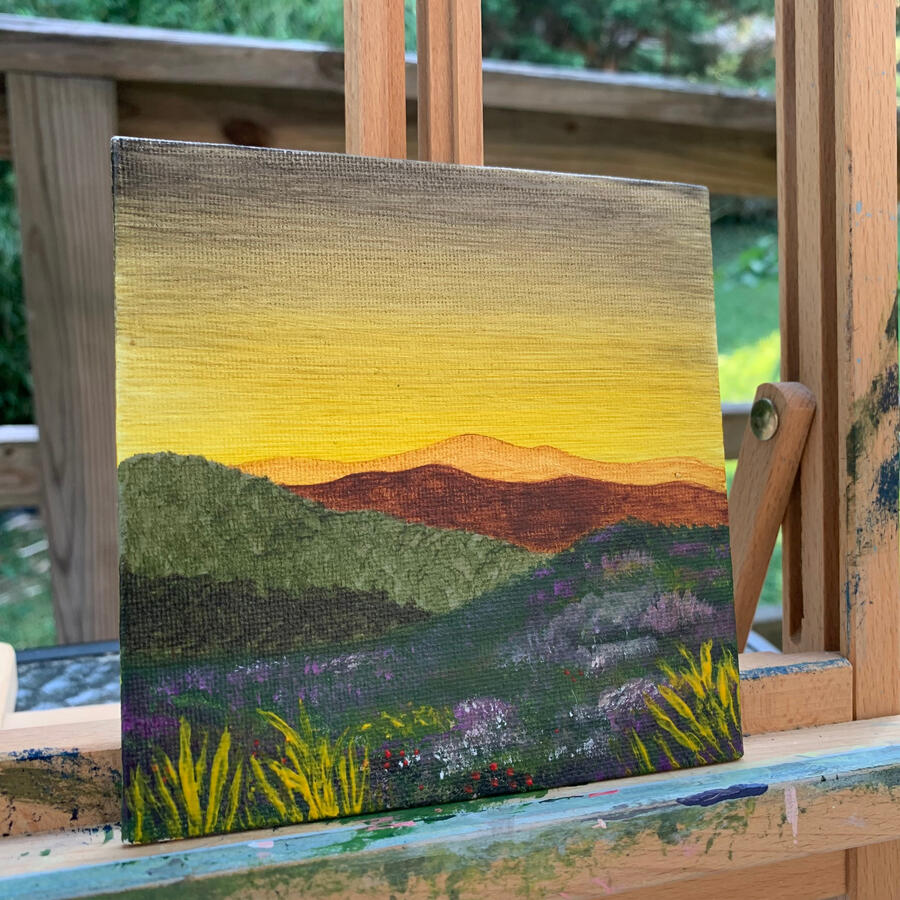 This sunset mountain landscape showcases the beauty of the Appalachian Mountains. This piece represents the colorful vibrancy of nature itself.